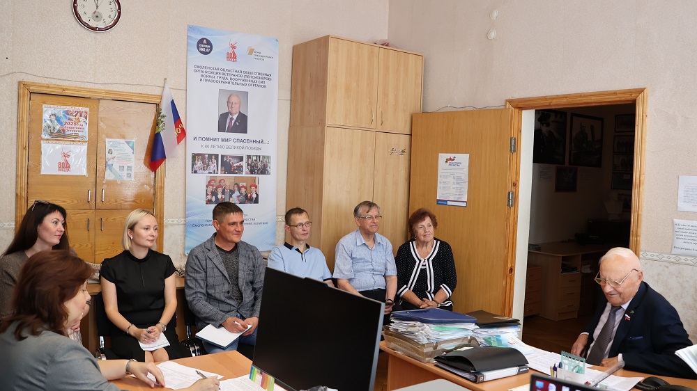20 августа состоялось заседание рабочей группы по реализации проекта Смоленского областного совета ветеранов «И помнит что мир спасённый …», поддержанного по итогам конкурсного отбора на предоставление в 2025 году субсидии СОНКО на финансовое обеспечение затрат на реализацию социальных программ, направленных на развитие гражданского общества в Смоленской области.