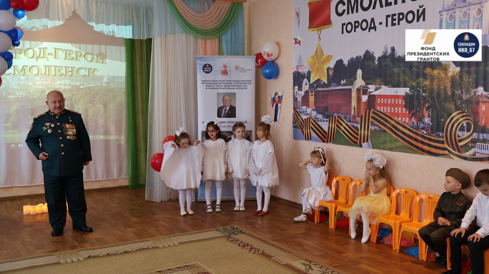 С приветственным словом к воспитанникам детского сада обратился заместитель председателя Смоленской областной общественной организации ветеранов войны, труда, вооружённых Сил и правоохранительных органов Седов Владимир Владимирович.